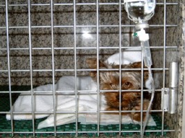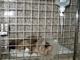 También se les colocan VÍAS EN LAS VENAS Y SOLUCIONES INTRAVENOSAS, como a las personas, sólo que con más precaución para que no se las arranquen.